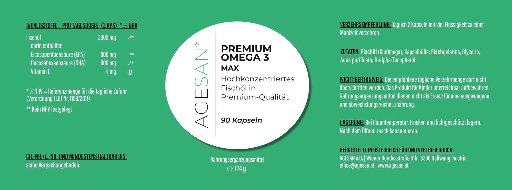 Zutaten: Fischöl, Kapselhülle: Fischgelatine, Glycerin, Aqua purificata; D-alpha-Tocopherol
